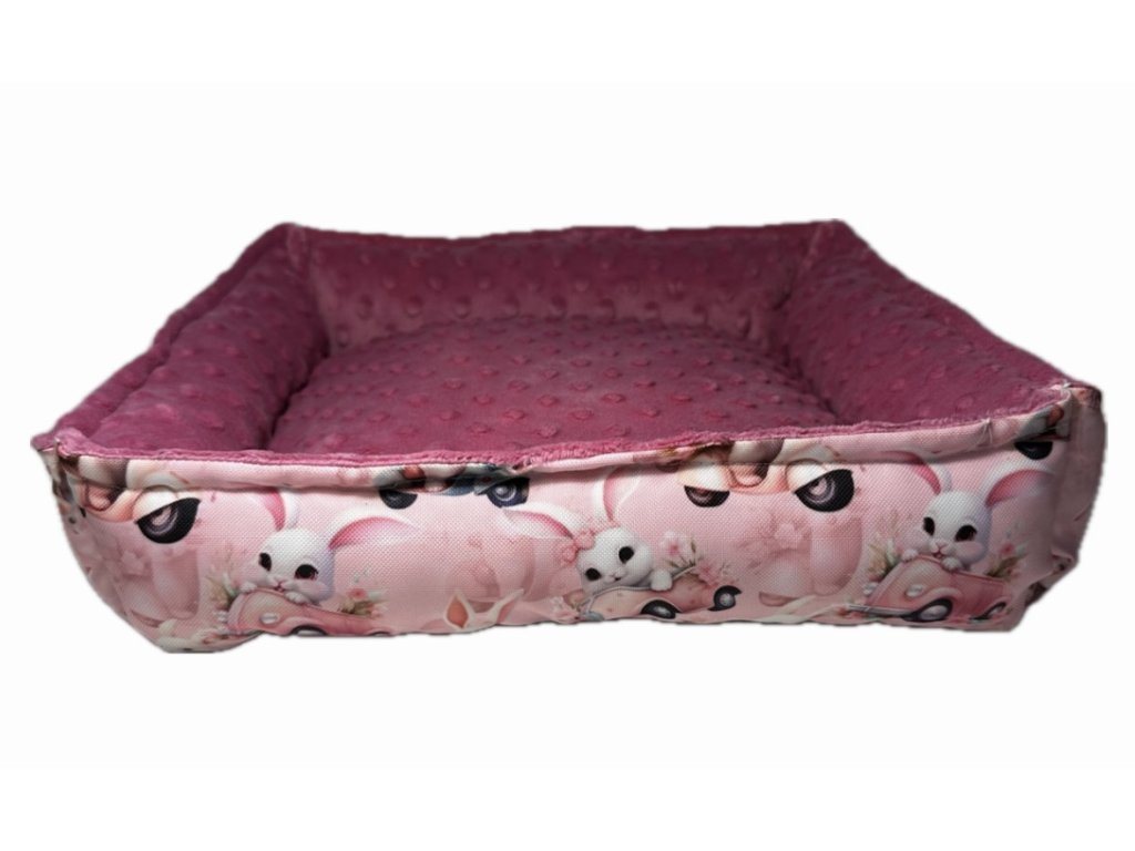 Pelíšek pro králíčka s vyšším okrajem, aby se králíček cítil v bezpečí.